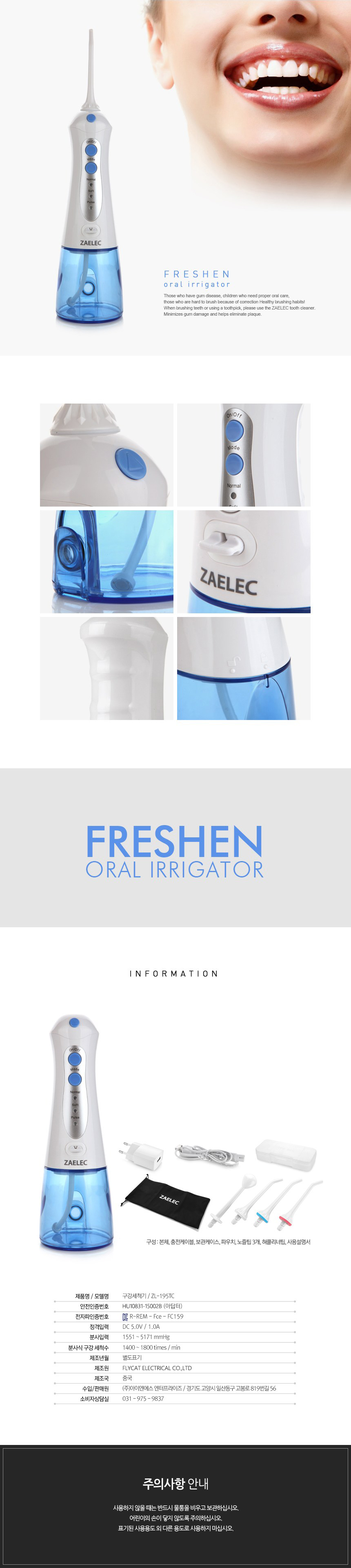제품명/모델명 : 구강세척기 / ZL-195TC