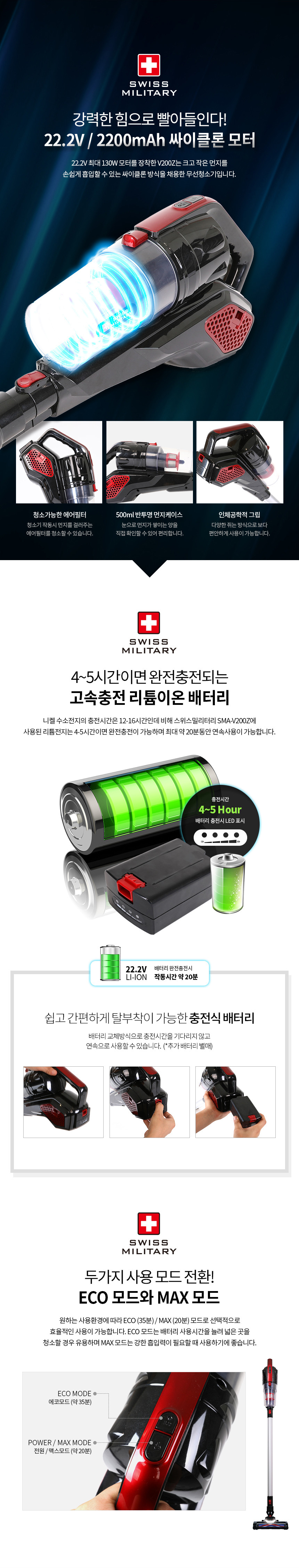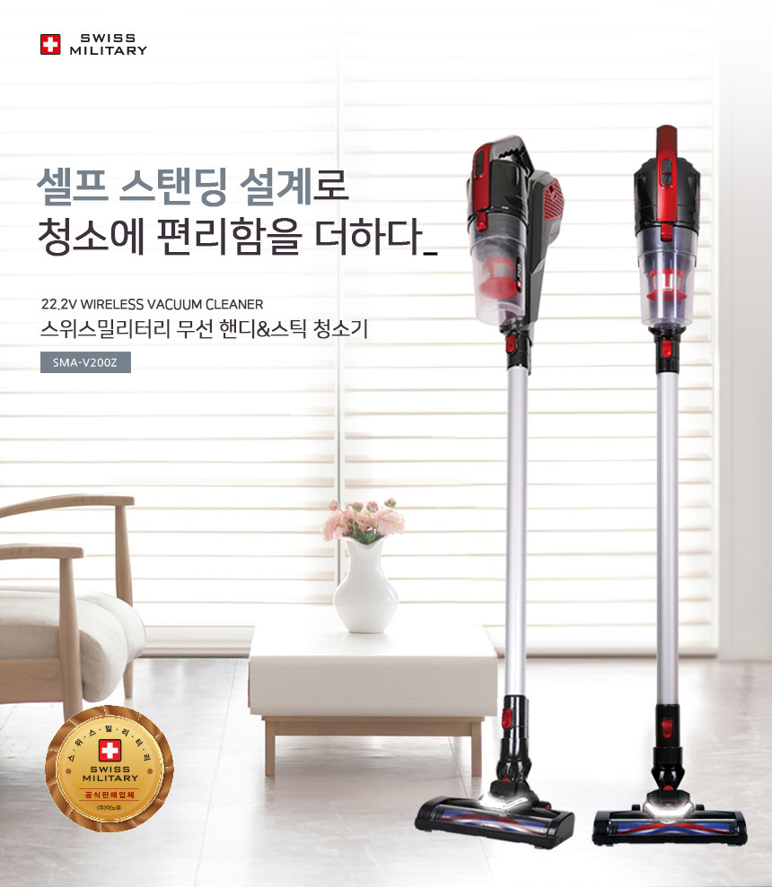 [스위스밀리터리] 무선 핸디&스틱 청소기(색상:블랙&레드) SMA-V200Z