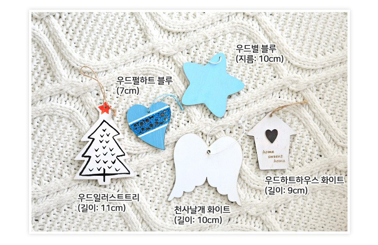 우드일러스트트리(11cm),우드펄하트 블루(7cm),우드별 블루(지름:10cm)