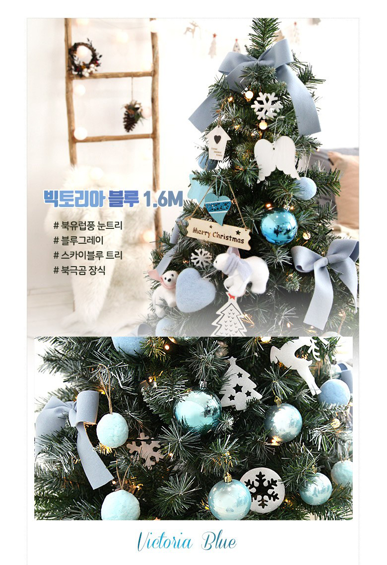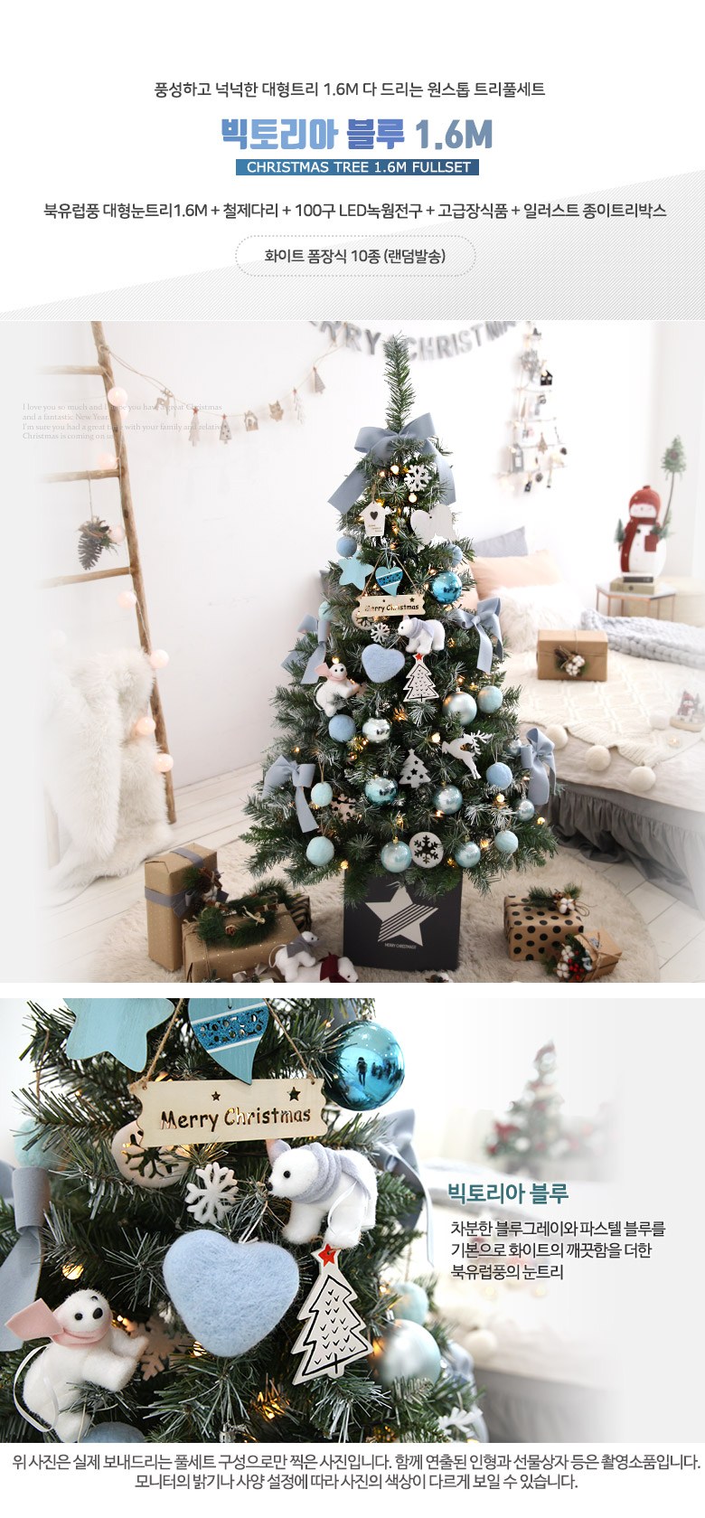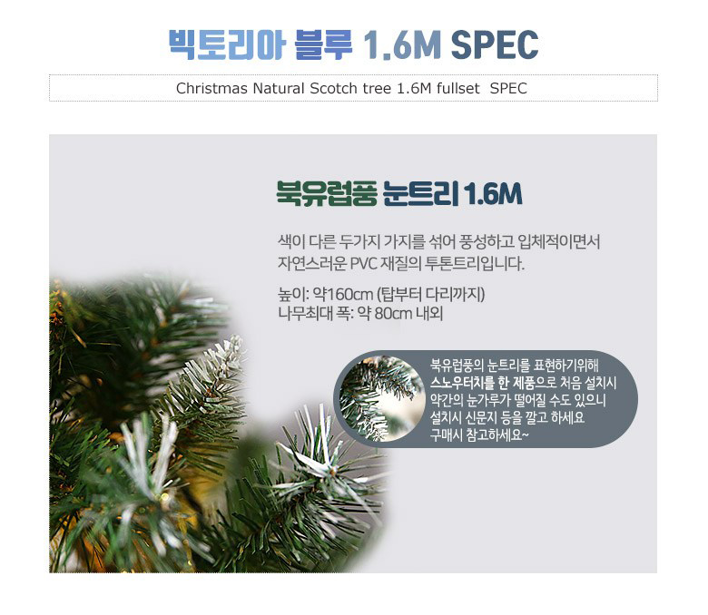 북유럽풍 대형눈트리 1.6M + 철제다리 + 100구 LED녹웜전구 + 고급장식품 + 일러스트 종이트리박스