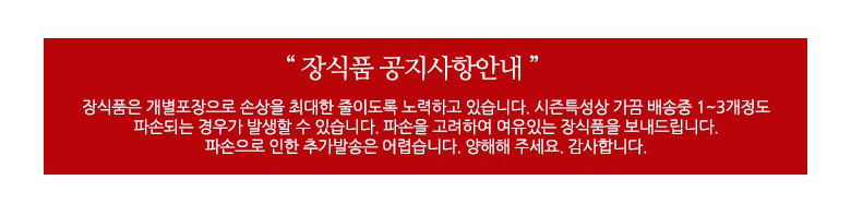 파손되는 경우가 발생할 수 있습니다.파손을 고려하여 여유있는 장식품을 보내드립니다.