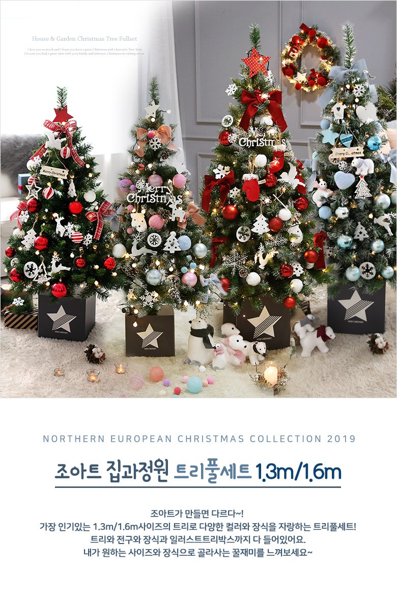 가장 인기있는 1.3m/1.6m사이즈의 트리로 다양한 컬러와 장식을 자랑하는 트리풀세트!